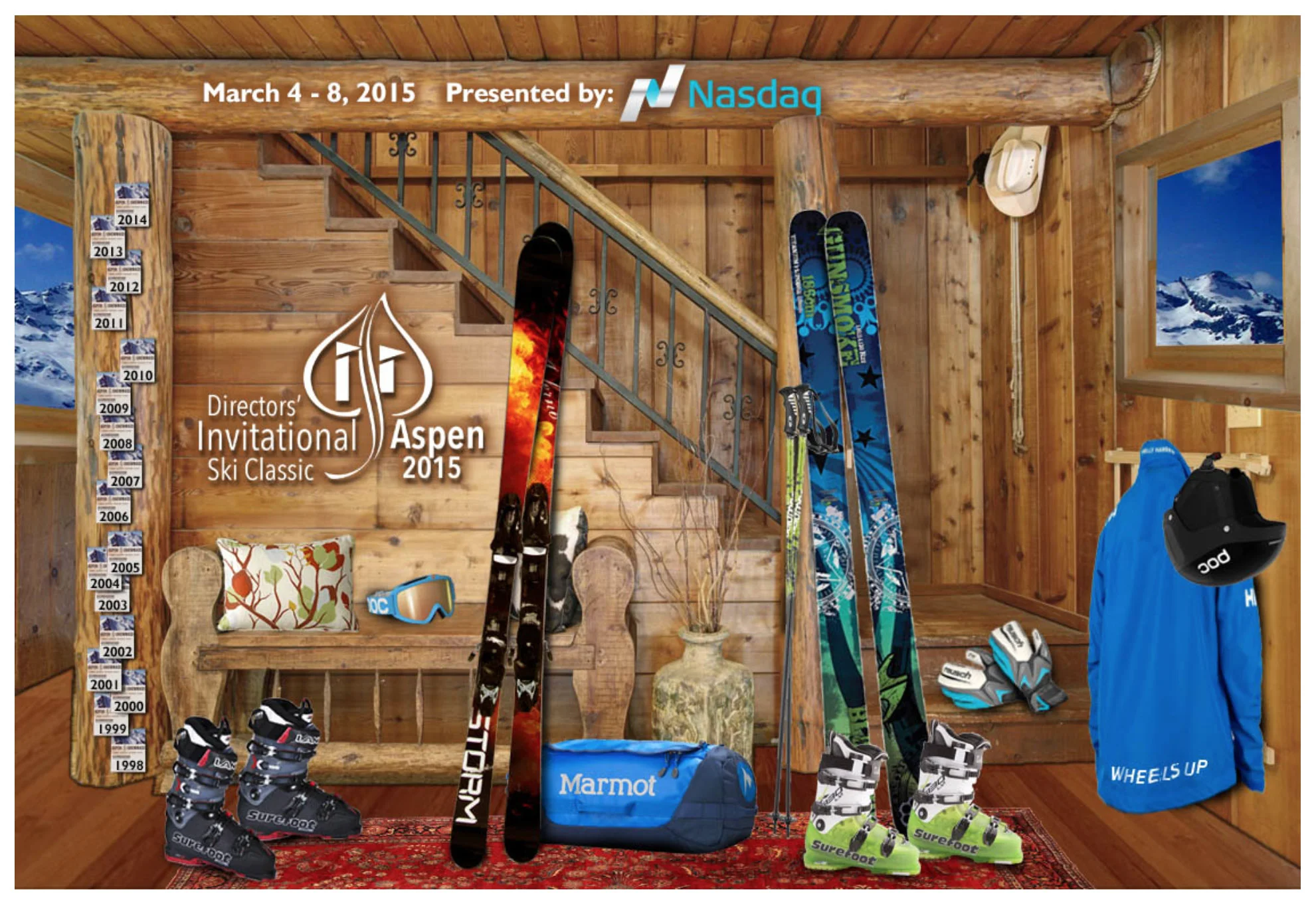 This website requires a password to login, but once logged in, PFC built this beautiful cabin scene in Photoshop. Each year the gear in the cabin changes depending on who is sponsoring the event.