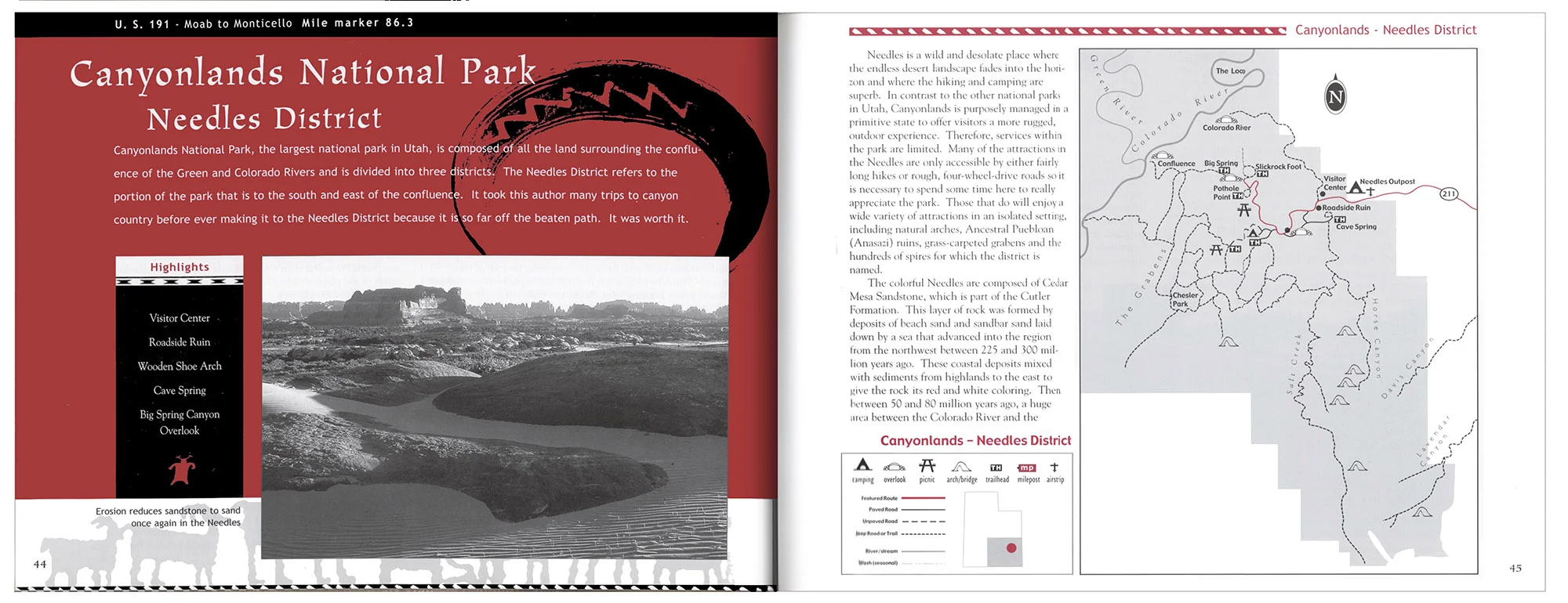 For this 225 page travel guide, I designed the layout, provided all the illustrations, graphic motifs and drew 25 complex maps.